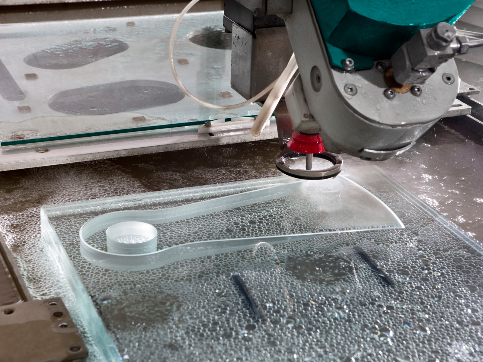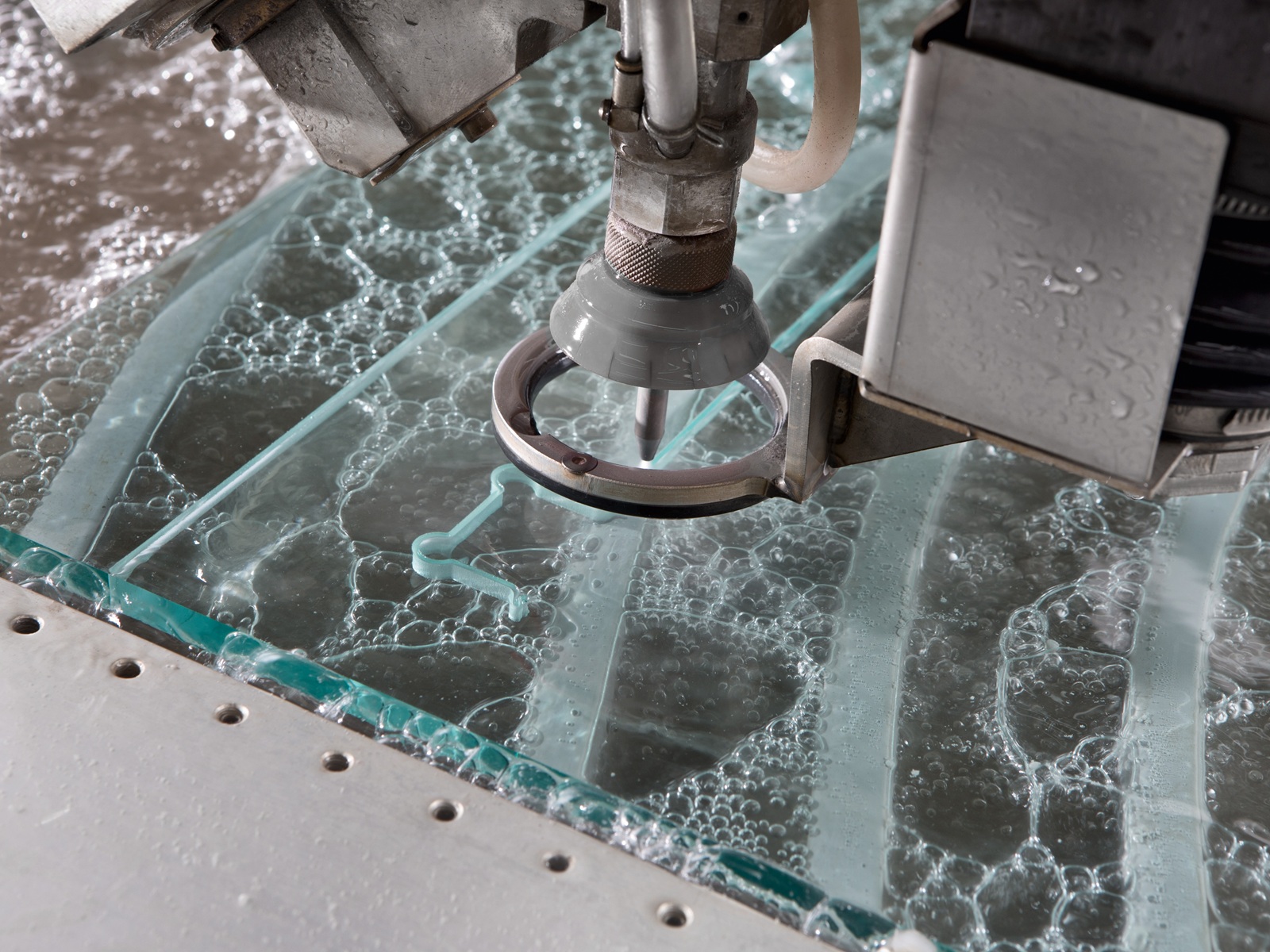 Med 5-akset skjærehode og kontinuerlig roterende C-akse kan Cut Up J utføre krevende glassbearbeiding i én og samme operasjon. Dette gir høy repeterbar kvalitet og reduserer behovet for etterbearbeiding. Maskinen egner seg for både monolittisk, laminert og spesialglass.