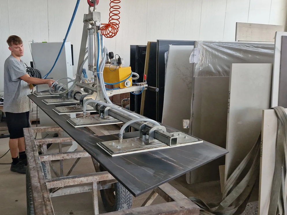 Righetti P5A550K er en pneumatisk vakuumløfter utviklet for håndtering av kjøkkenbenkeplater og andre lange steinplater i naturstein, keramikk og tilsvarende ikke-porøse materialer. Vakuumløfteren benyttes som løfteåk sammen med kran, truck eller annet egnet løfteutstyr og er beregnet for både horisontal og vertikal håndtering.